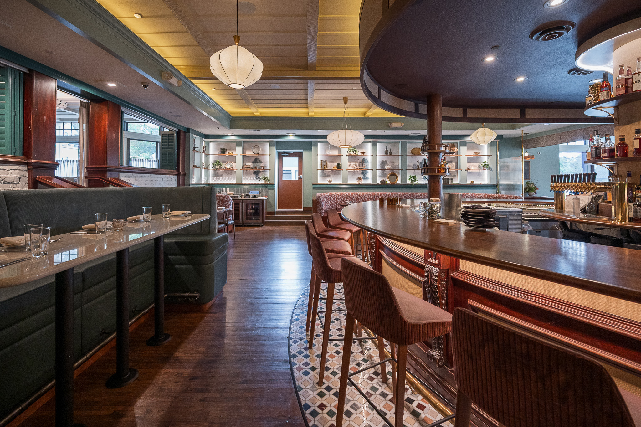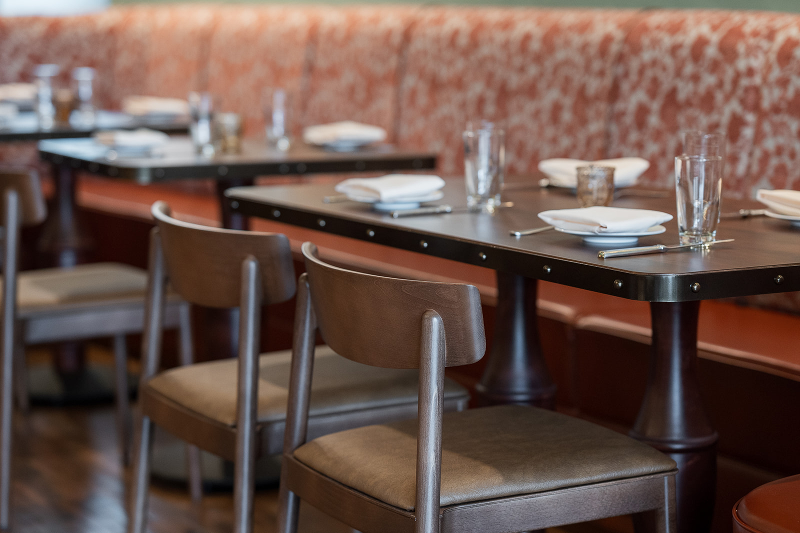 As Ancoats’ fifth consecutive project with Jester Concepts and third collaboration with Studio Grey, Mirabelle reflects the strength of long-term partnership and shared vision. Housed within a historic, fully occupied building on the busiest corner of downtown Excelsior, the renovation carefully balanced precise planning with fresh energy to create a seamless experience that feels both elevated and historic.